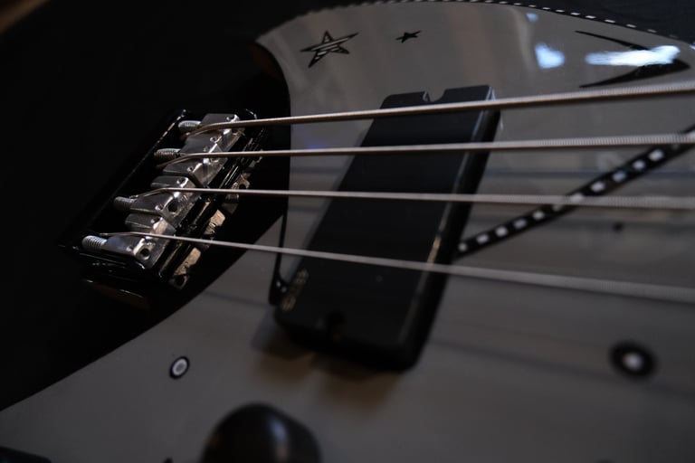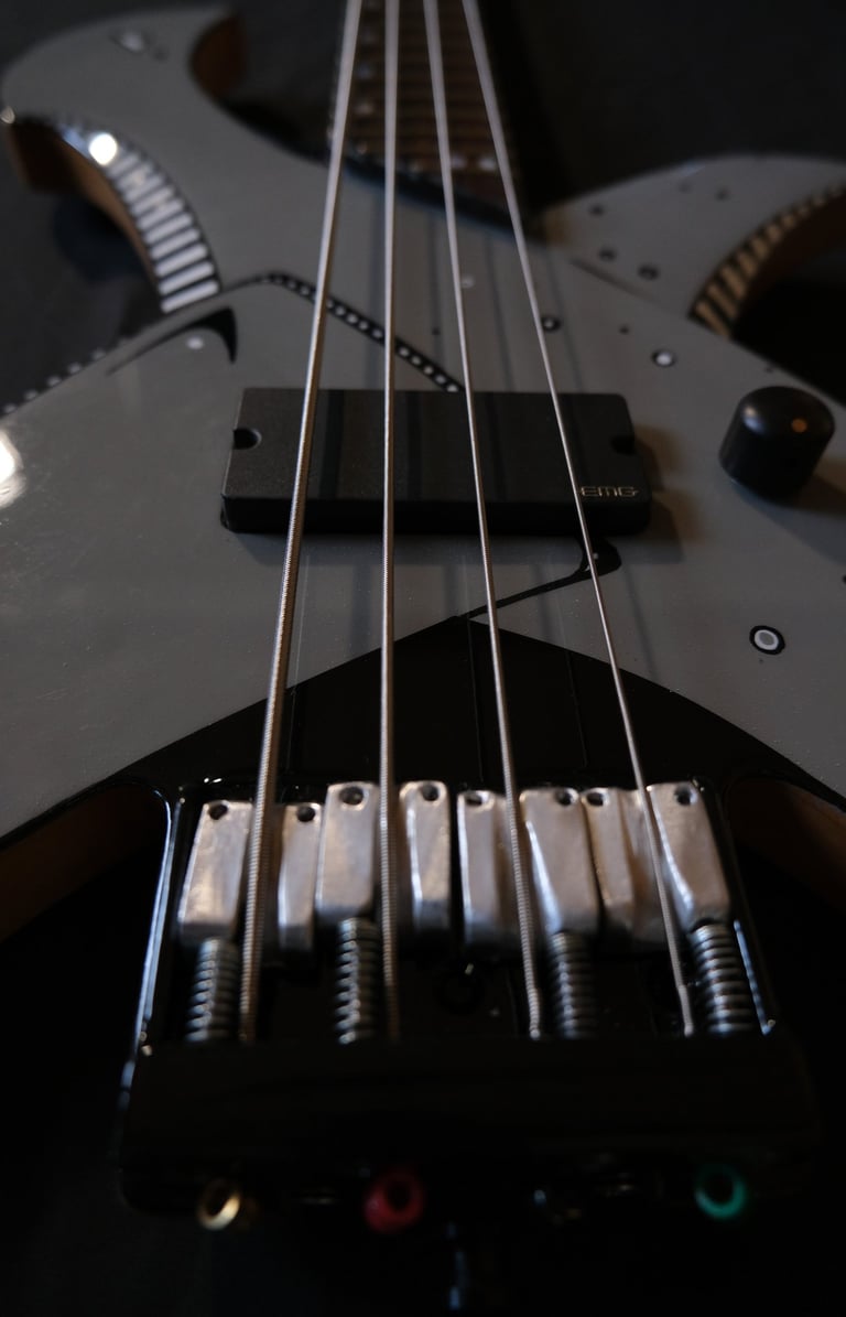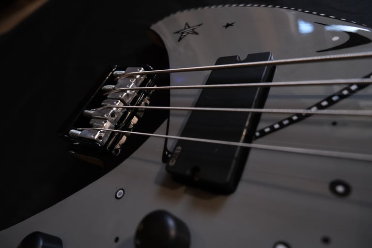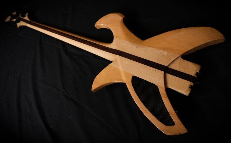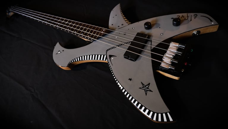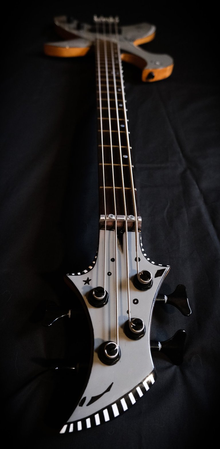 Je suis allé un peu plus loin encore dans le "fait maison", puisque même le chevalet et le sillet sont faits à la main, taillés et sculptés dans des bouts de moyeux de mon ancienne 106 ^^. Pour la touche artistique, c'est le coup de pinceau d'Elfye* qui donne vie à ce nouvel instrument !Un micro, un volume, une tonalité... Simple, basique...: Booooooom !!! Elle a un son incroyable