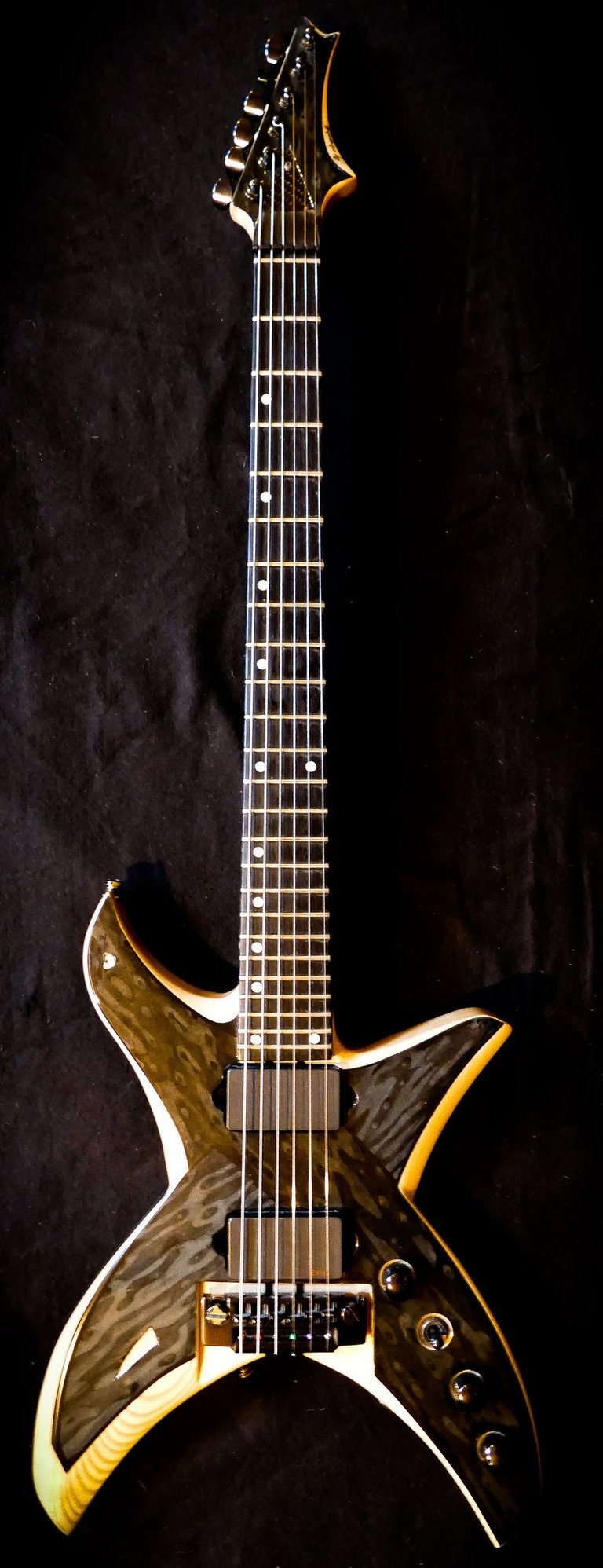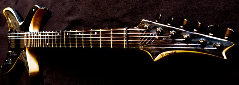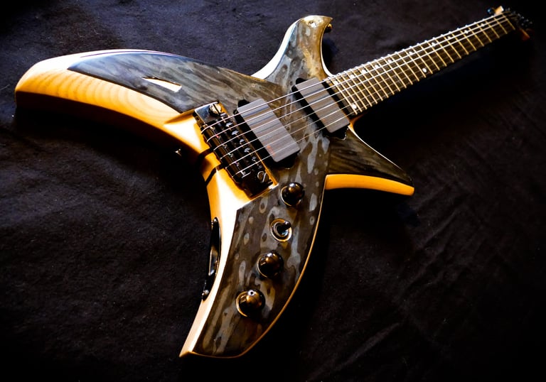 C'est ma 2ème création, et elle avait pour vocation de corriger les défauts de la 1ère... Objectif : Une guitare plus légère ( ce ne sera pas très compliqué ! ), adieu de le Floyd Rose, un manche plus fin...
