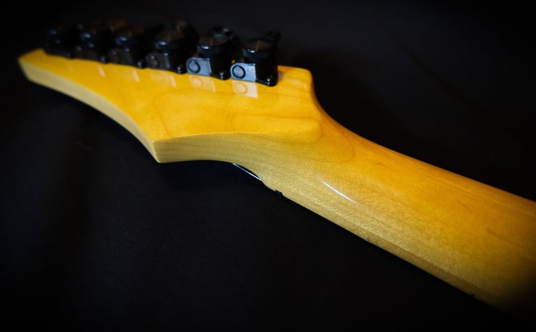 Finition du manche en vernis old yellow